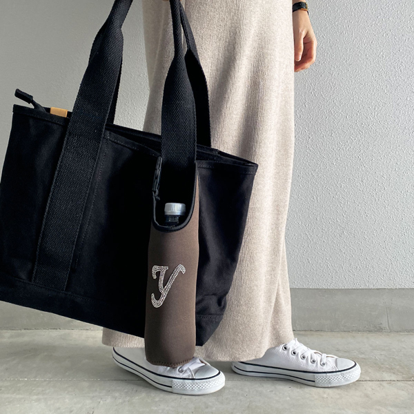 伸縮素材で650mlペットボトルや水筒にも使えます。