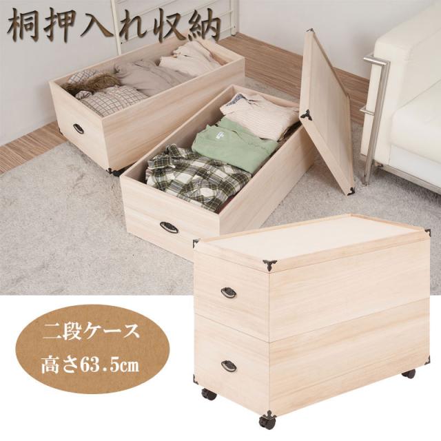 総桐押入れ収納ケース 2段 高さ63.5cm (衣装ケース 着物 和装 天然木 桐材 収納ボックス キャスター付き クローゼット 保存 保管 和モダン 国産 日本製 おしゃれ)
