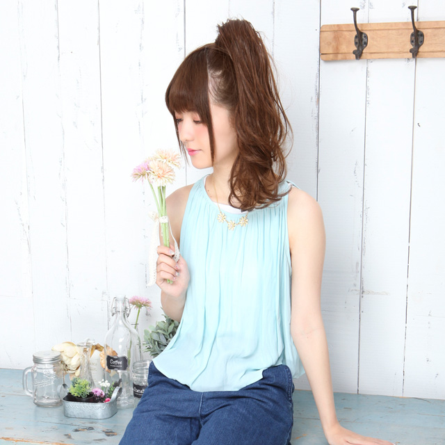 ポニーテールにして着用するのがオススメです。
