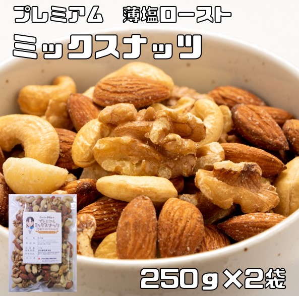 ミックスナッツ 薄塩 250g×2袋 グルメな栄養士 プレミアム (メール便)4種 アーモンド くるみ マカダミアナッツ カシューナッツ おつまみ