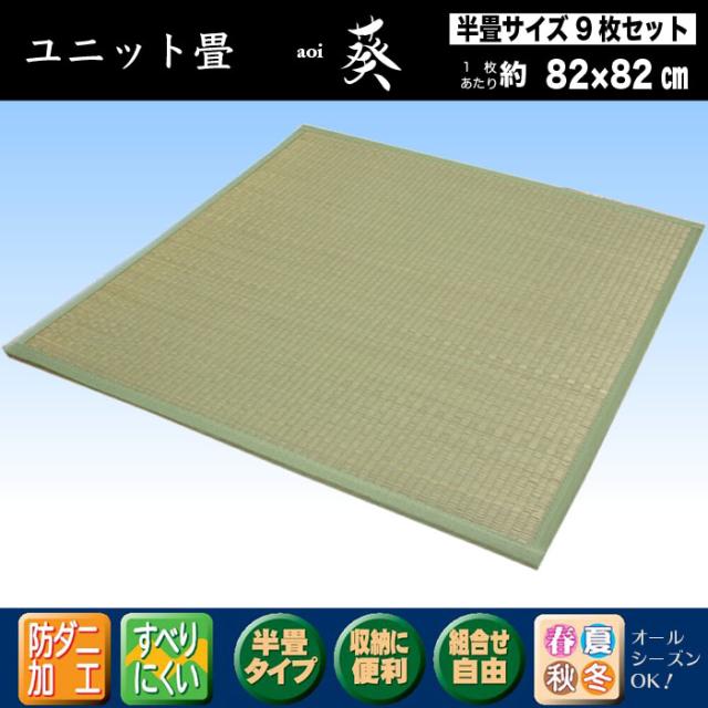 ユニット畳82x82cm「葵」:半畳サイズ【9枚セット】:約4.5畳用(246x246cm) 【不織布貼、スベリ止め加工、不織布ボード使用】
