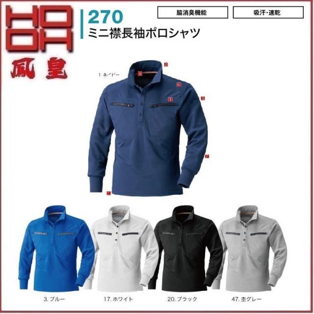 HOOH 270 ミニ襟長袖ポロシャツ 村上被服 鳳凰 S〜5L 脇消臭機能 吸汗・速乾 (ネーム刺しゅうできます)