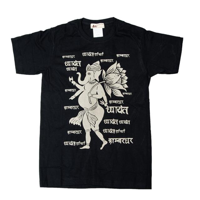 ガネーシャとロータス / T-シャツ、インドの神様 T-シャツ、エスニック、ヒンドゥー、ガネーシャ T-シャツ、Tシャツ TIRAKITA(ティラキタ) エスニック衣料 【エスニック・アジアン衣料