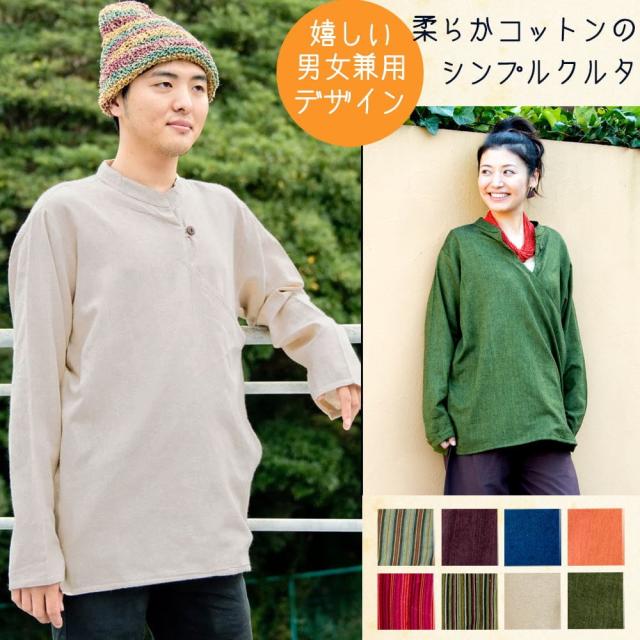 柔らかコットンのシンプルクルタ / コットン クルタ、クルタ、シャツ、長袖シャツ TIRAKITA(ティラキタ) エスニック衣料 【エスニック・アジアン衣料