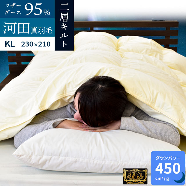 羽毛布団 キング ロング Srata マザーグース 二層キルト 河田フェザー ダウン95% 国内洗浄 80超長綿サテン