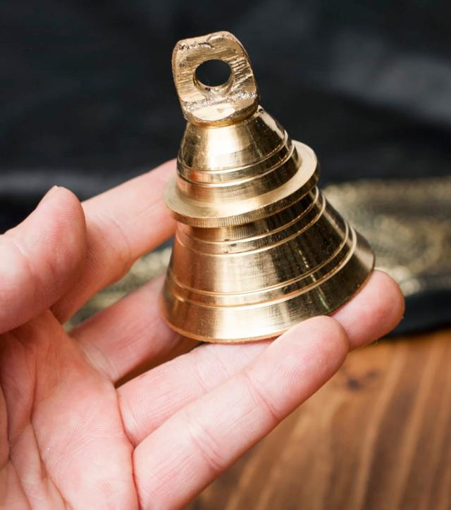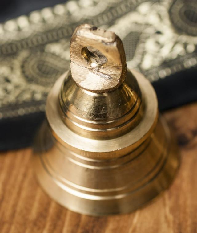 真鍮を型に入れて削りだした、素朴な風合いがインドらしい一品です。音色は澄んでいて涼やかな感じです。