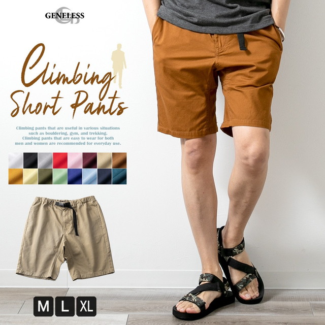 ショートパンツ メンズ クライミング ショーツ ハーフパンツ ショート丈 アウトドア パンツ ゴルフ スポーツ オレンジ 黒 半ズボン シンプル 無地 綿100 M L LL XL