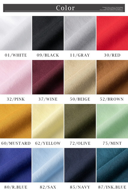 | ホワイト ブラック グレー レッド ピンク ワイン ベージュ ブラウン マスタード イエロー オリーブ ミント Rブルー サックスネイビー インクブルー |