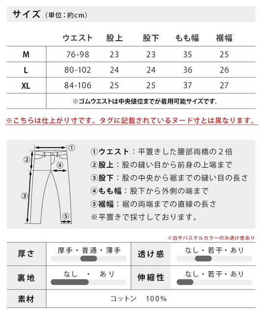 | ウエスト | 76〜98 | 80〜102 | 84〜106 |