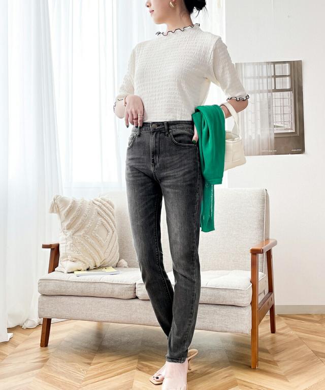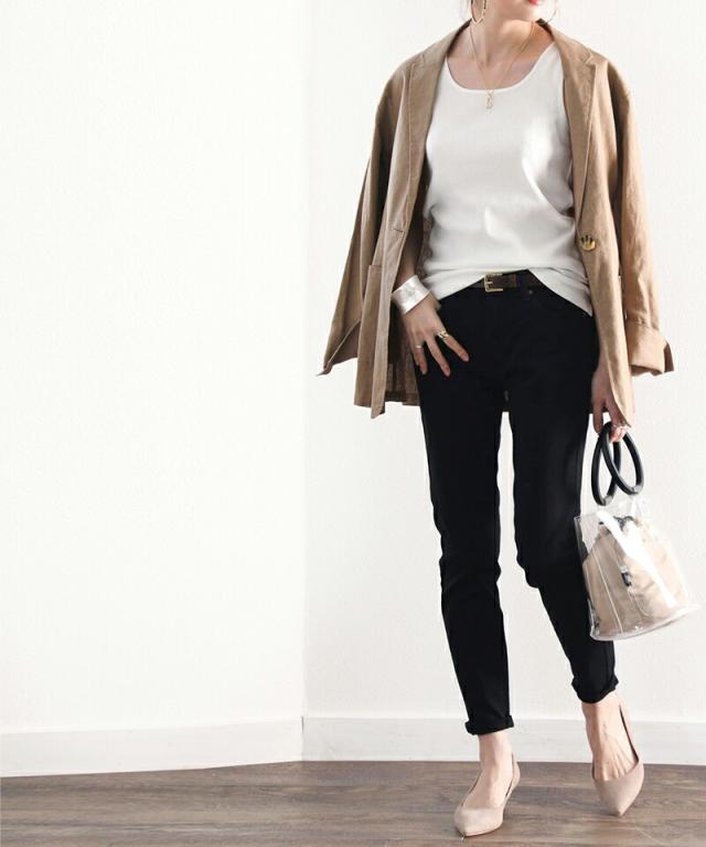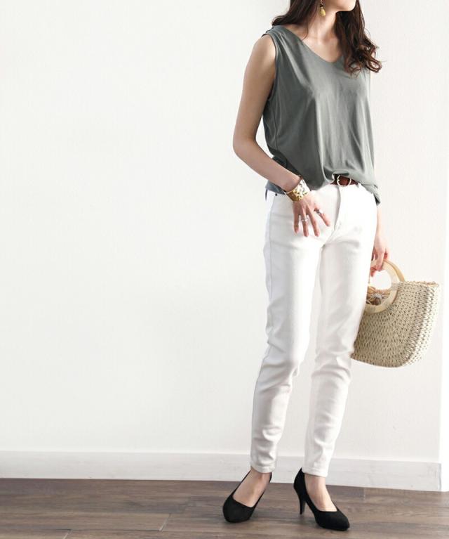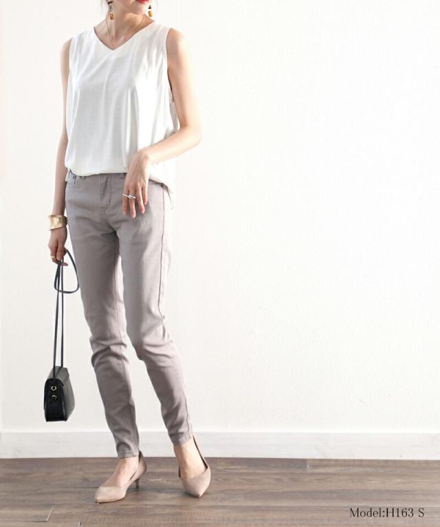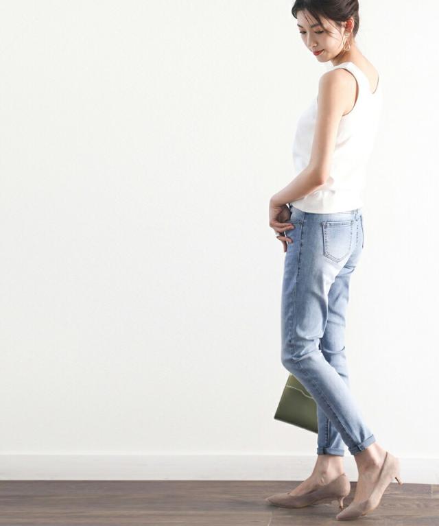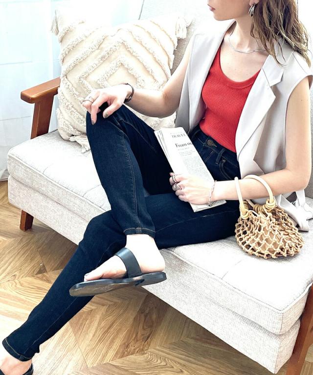 余計な装飾のない、シンプルなスキニーパンツは、トレンドやテイストに関係なく