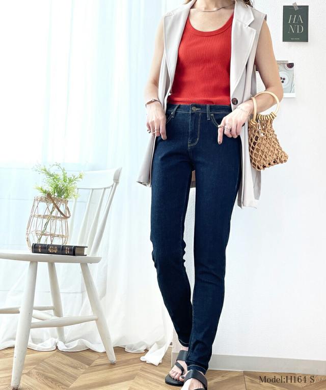 秋新作 クラシカルエルフ レディース 体型カバー ウエストゴム UV スキニー ゆったり スーパーストレッチ シルエット ボトムス デニムパンツ elf041