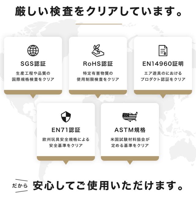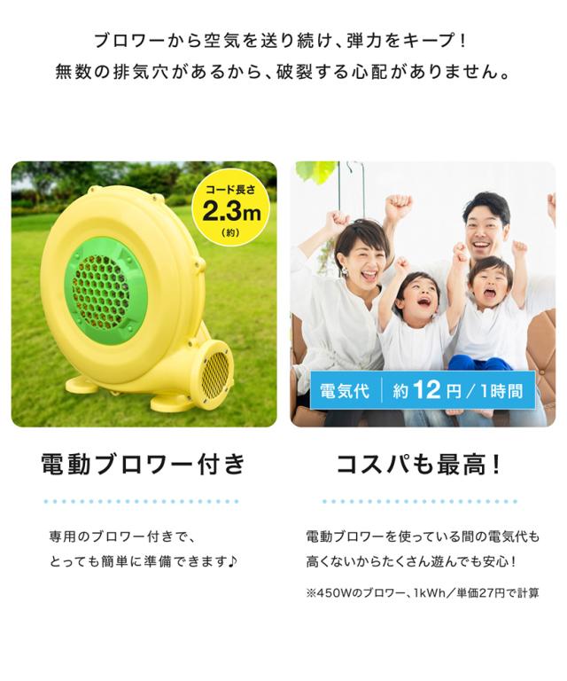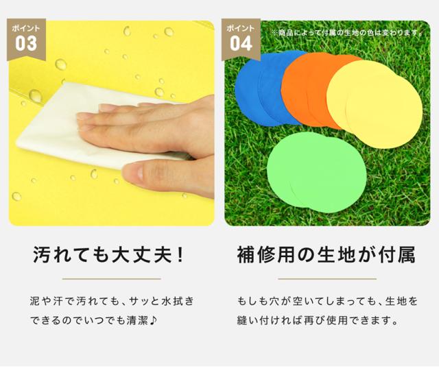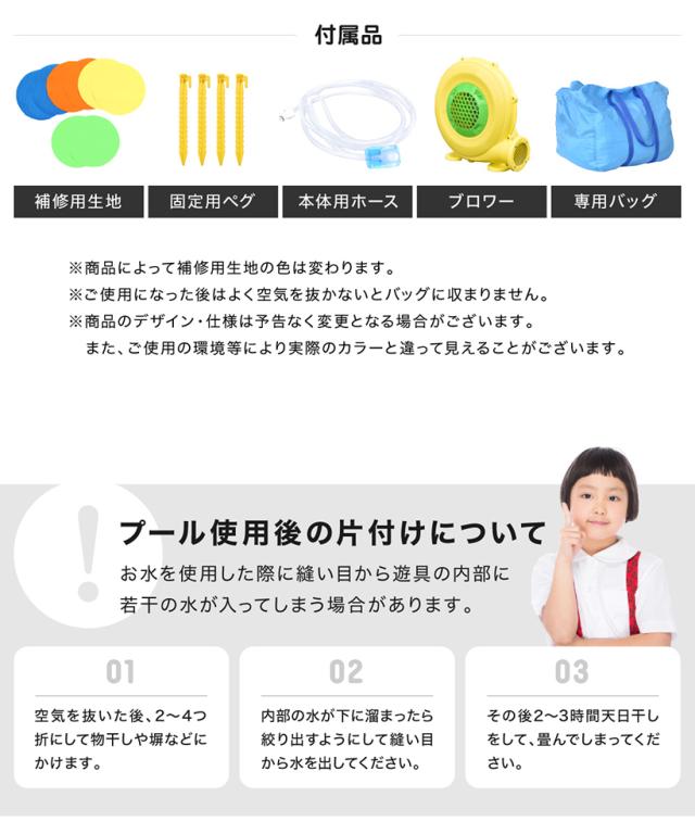 | 付属品: | 専用ブロアー(450W)、固定用ペグ4本、修復用生地、本体用ホース、取扱説明書 |