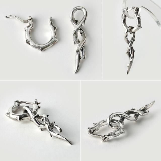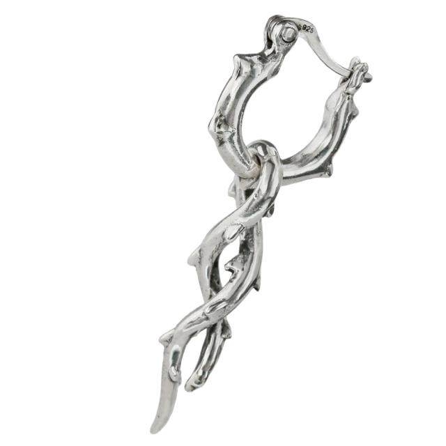 ドロップ フープピアス ツタ トゲトゲ ピアス シルバー925 アクセサリー シルバーピアス 片耳用 (1個売り)