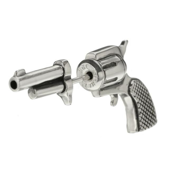 ピアス メンズ レディース シルバー925 銃 ピストル 拳銃 ガン スタッドピアス ロック おもしろ 個性的 メンズピアス 片耳用 (1個売り) Binich 20代 30代 40代 50代 プレゼント 男性用 アクセサリー bae-3505