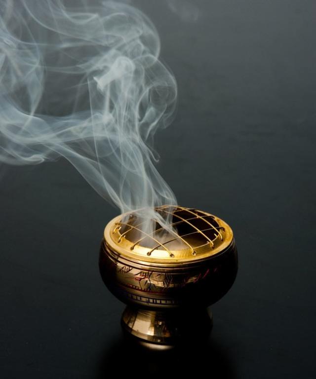 こちらのお香は火の付いた炭の上に載せて使用します。この様な専用の香炉を使うと雰囲気が出ますね