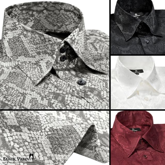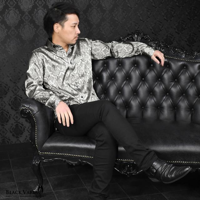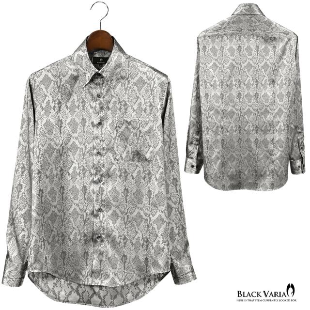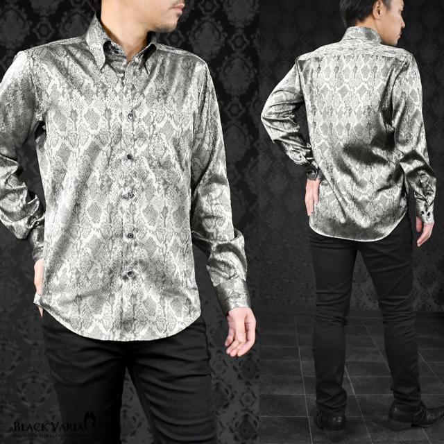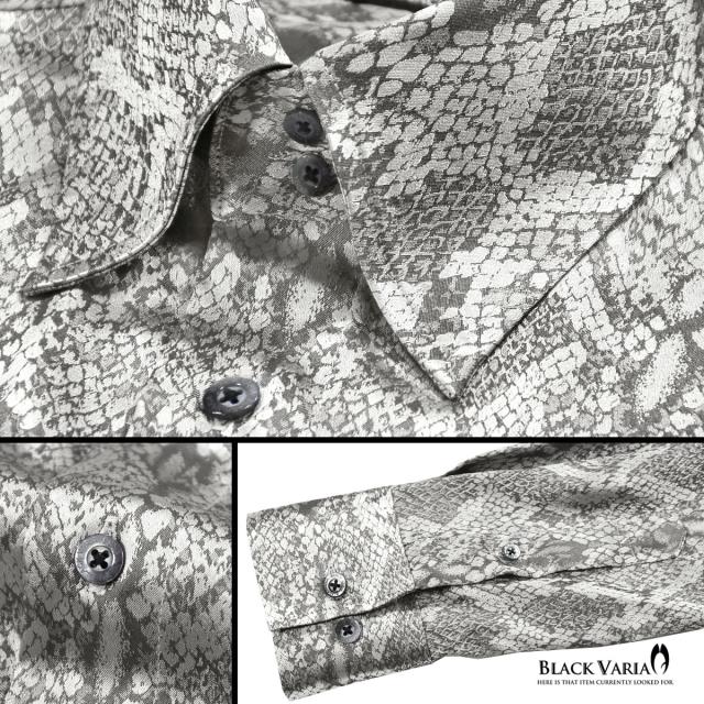 サテンシャツ ドレスシャツ ドゥエボットーニ パイソン 蛇 日本製 レギュラーカラー ジャガード メンズ(グレー灰シルバー銀) 181711