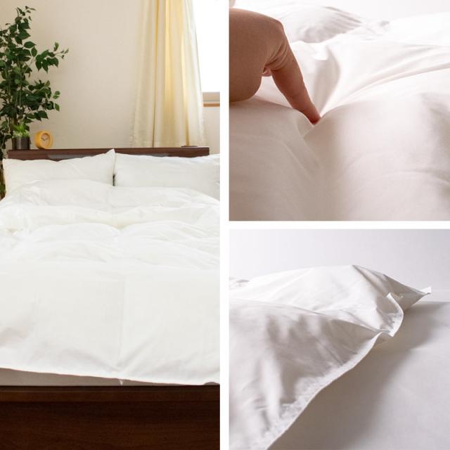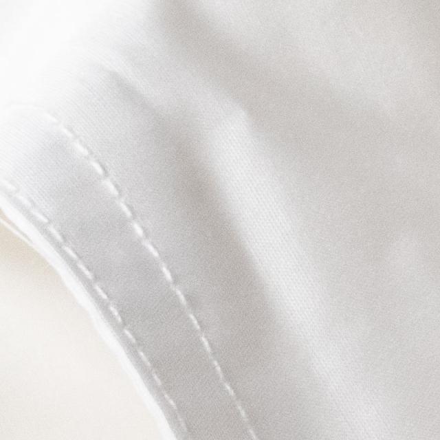 側生地は無地カラーのホワイト。濃い色や柄物のようにカバーに透けたりしにくいので人気です。カバーを固定するためのループは8ヶ所、軽やかな新合繊軽量生地はもちろんダウンプルーフ加工済みです。