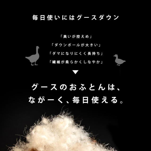 | 仕様 | 8ヶ所ループつき 新合繊軽量生地 ポーランド産ホワイトグース 立体キルト |