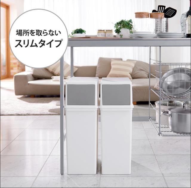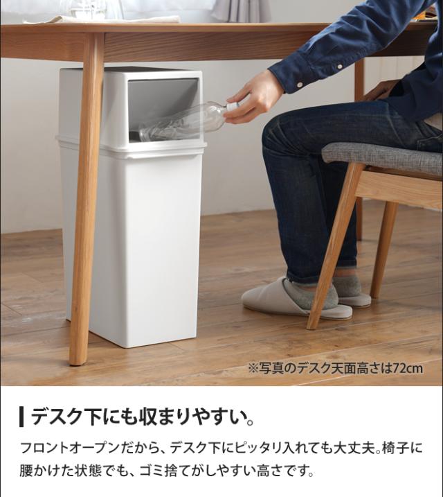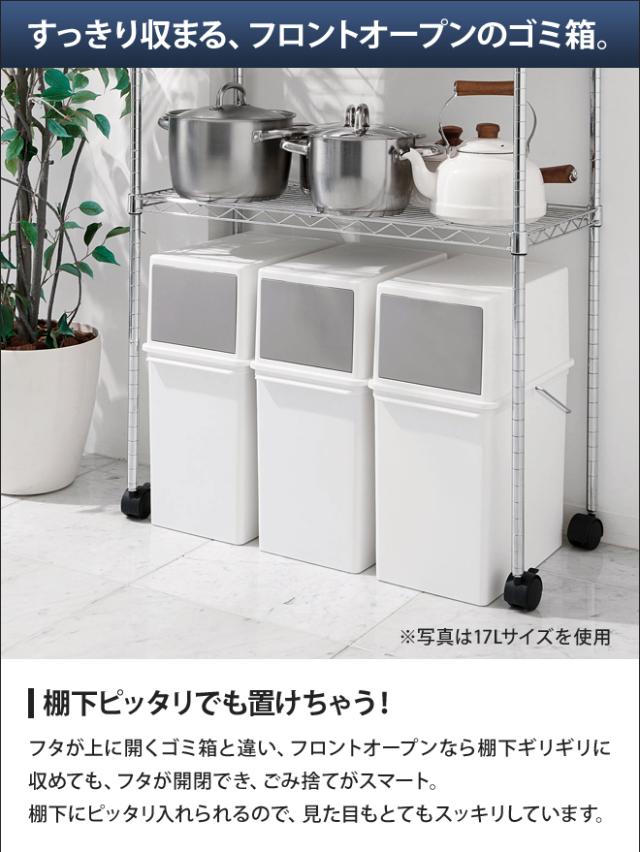 棚下の限られたスペースでも置きやすいフロントオープンは、並べて重ねて、分別用ゴミ箱としてもお勧めです。色数を抑えたモノトーンなスタイルなので、お部屋をスッキリとまとめられます。
