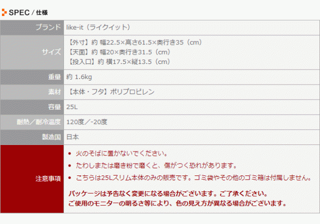 ・こちらは25Lスリム本体のみの販売です。ゴミ袋やその他のゴミ箱は付属しません。