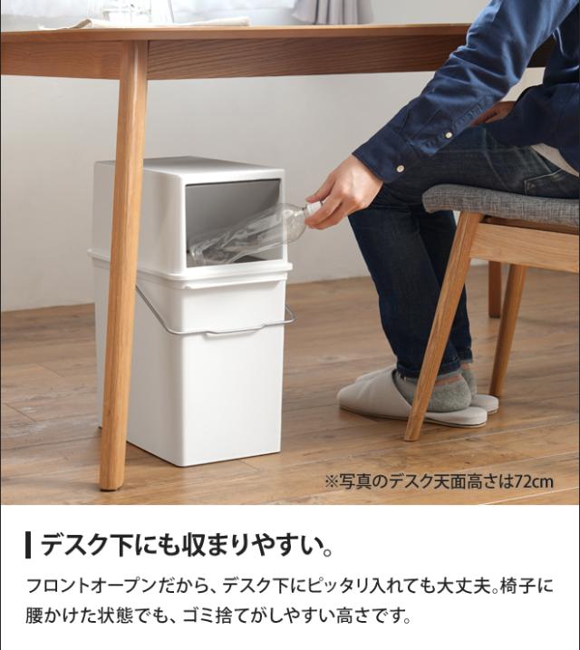 棚下の限られたスペースでも置きやすいフロントオープンは、並べて重ねて、分別用ゴミ箱としてもお勧めです。色数を抑えたモノトーンなスタイルなので、お部屋をスッキリとまとめられます。