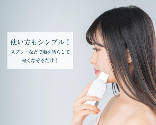 「アクア毛穴クリーン」シリーズで最も小型のシンプル設計の毛穴美顔器。誰もが必要な機能だけに絞り手軽に使えるかわいいデザイン。使いやすいクレンジングモードに更に磨きをかけました。手軽に手に取れるエントリーモデル。洗浄効果に特化し、顔をお水で濡らして、POWERボタンを押して、軽くお肌の上を滑らせるだけ。