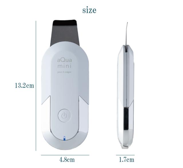 ■セット内容:本体、USBケーブル■サイズ:約13.2x4.8x1.7cm■重量:約70g■使用方法:1.スパチュラの先端に付いているカバーを外してPOWERを押して電源を入れます。2.お手持ちのスプレーなどで顔を濡らしてアクアミニで顔を軽く滑らせるだけ。3.使用後は軽く本体・スパチュラを拭いて収納して下さい。■主材質:ABS樹脂■仕様:●使用電池:リチウムポリマー電池●充電時間:約1.5時間(約20分の使用が可能)●超音波周波数:28kHz●定格電圧・電流:DC3.7V/600mA 消費電力:約2.5W■生産国:中国■発売元:イノベイション株式会社