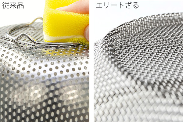 ●網の目が細かいので、食材が詰まったり水が溜まることもなく、お手入れも簡単です。