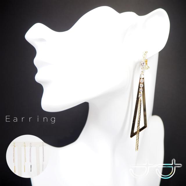 送料無料 イヤリング 揺れる レディース 長め ネジバネ式 2種類のパーツ組み合わせ ラインストーン