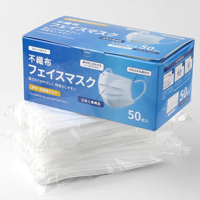 使い捨てマスク50枚入り、男女兼用成人マスク