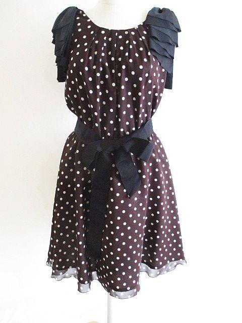 【中古】ランバンオンブルー LANVIN en Bleu ドット ワンピース チュール スカート リボン 茶 36 レディース
