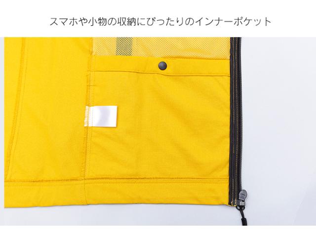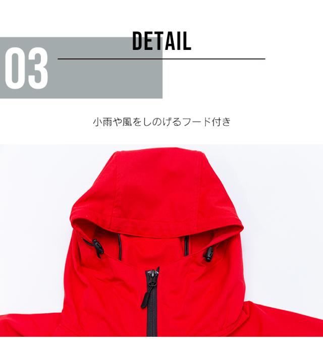 小雨や風をしのげるフード付き。