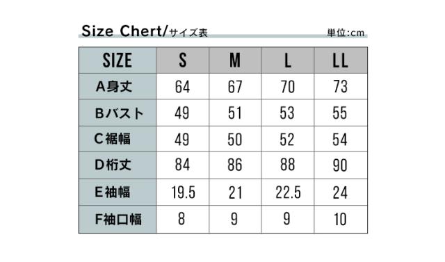 LL:胸囲55、後ろ中心〜袖90、袖丈81、着丈70/73