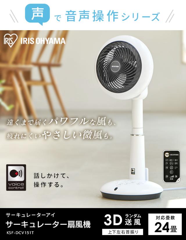 サーキュレーター 扇風機 アイリスオーヤマ dcモーター 静音 上下 左右 自動首振り パワフル送風 24畳 風量10段階 入 切タイマー リモコン付き 省エネ 音声操作 空気循環 衣類乾燥 換気 部屋干し 梅雨対策 スマートスピーカー WOOZOO KSF-DCV151T *