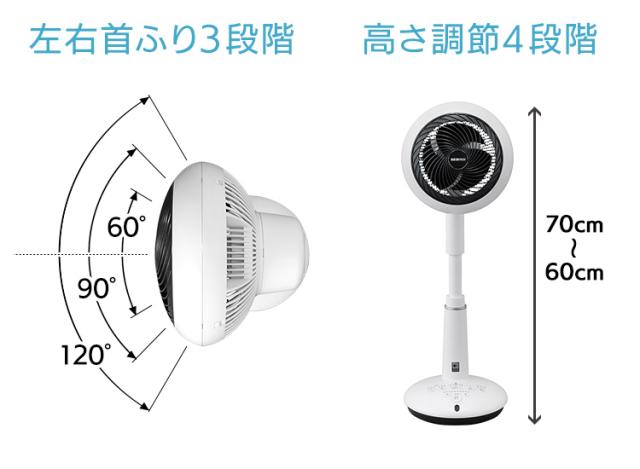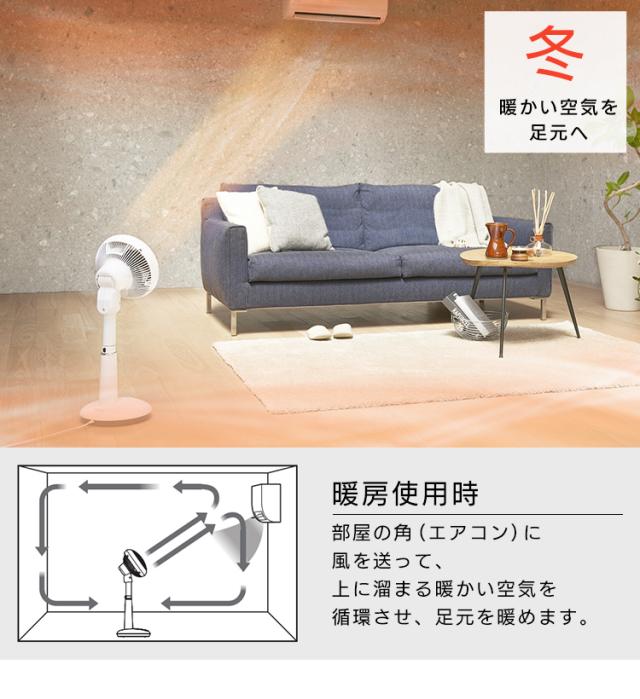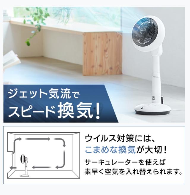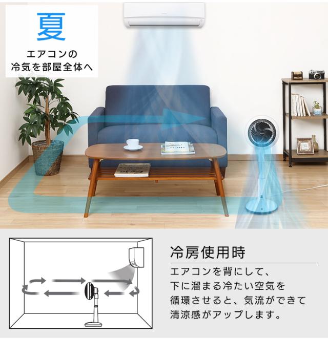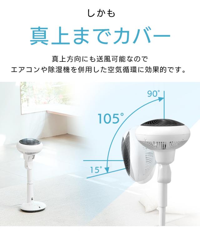 真上方向にも送風可能なので、エアコンや除湿器を併用した空気循環に効果的です。