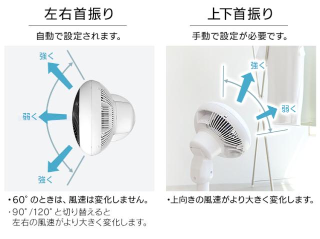 上下左右の自動首振りを立体的に組み合わせることにより、強力に空気を撹拌します。