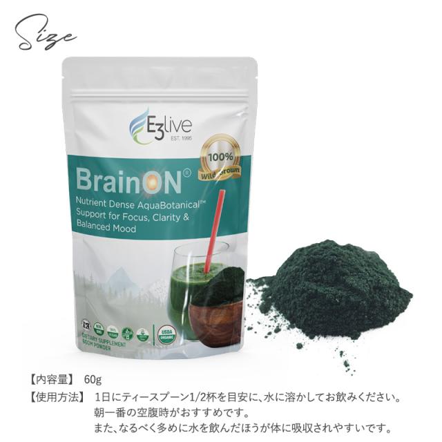 E3Live イースリーライブ BrainON パウダー 60g サプリメント オーガニック ナチュラル スーパーフード 女性 サプリ 集中力 疲労回復 ビタミン ミネラル