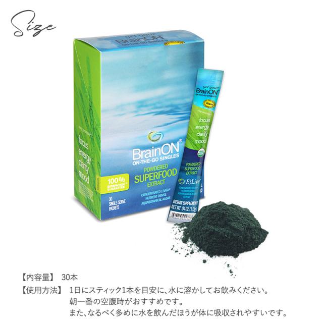 E3Live イースリーライブ BrainON パウダースティック 30本 サプリメント オーガニック ナチュラル スーパーフード 女性 サプリ 集中力 疲労回復 ビタミン ミネラル