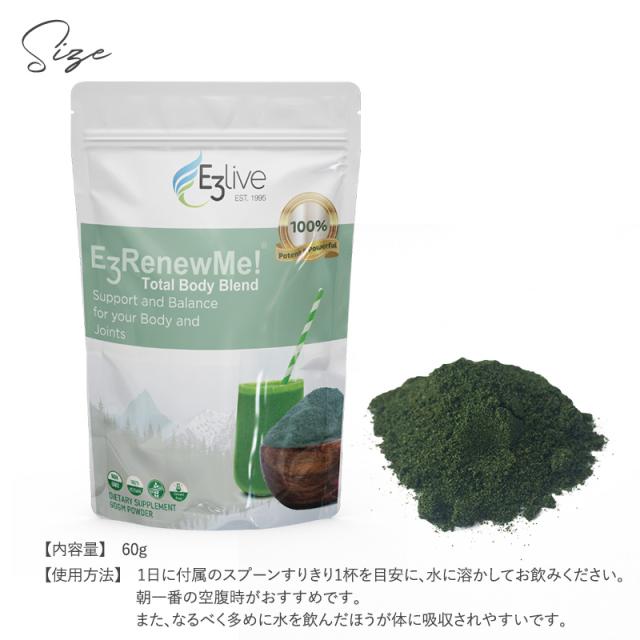 E3Live イースリーライブ Renewme! パウダー 60g サプリメント オーガニック ナチュラル スーパーフード 女性 サプリ 美容 運動 疲労回復 関節痛
