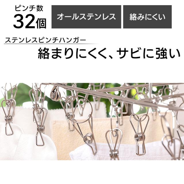 ピンチハンガー ステンレス アイリスオーヤマ 32ピンチ オールステンレス 丈夫 サビにくい 絡まりにくい 劣化しにくい 洗濯ハンガー 洗濯ピンチ 洗濯物干し 洗濯ハンガー 屋外 室内 部屋干し 梅雨 除湿機 サーキュレーター 花粉 PIH-32SH *