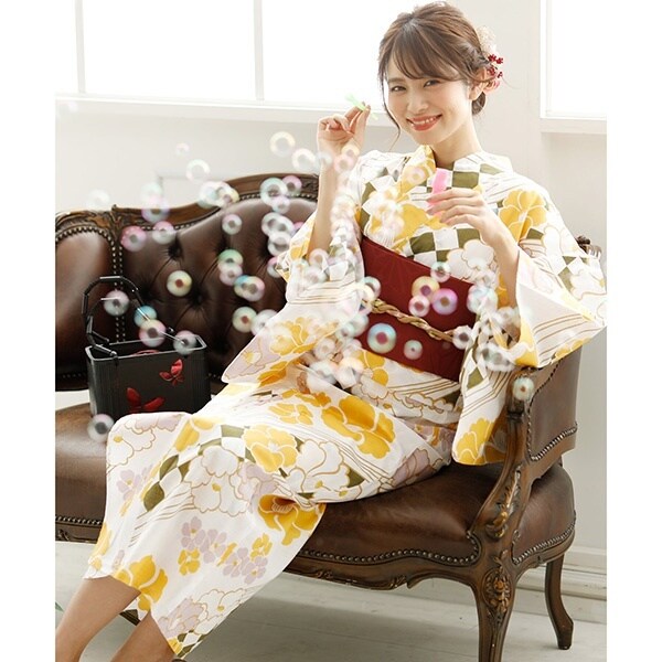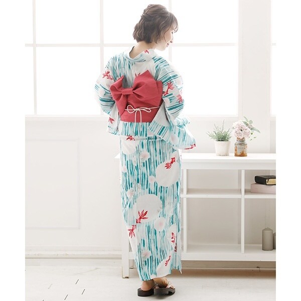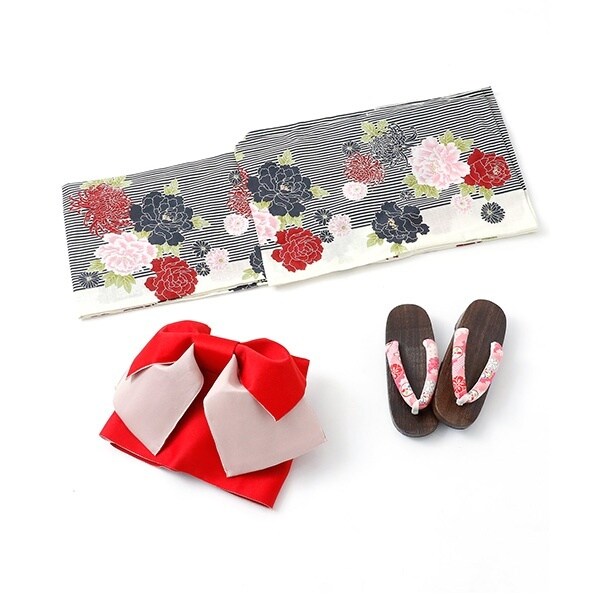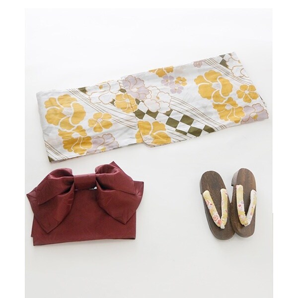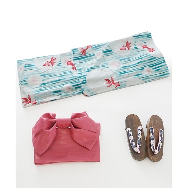 プールヴーの\12種類から選べる浴衣/3点セット【浴衣+作り帯+下駄】