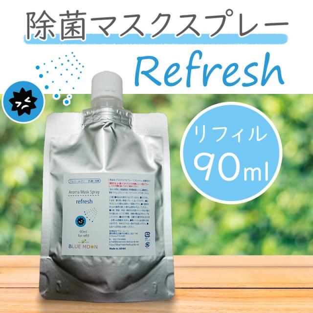 マスクスプレー リフレッシュ 90ml リフィル 除菌 アロマスプレー 詰め替え用 次亜塩素酸水 ライム レモン ユーカリ ペパーミント ラベンダー タイム の精油をブレンド アルコール不使用