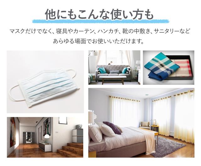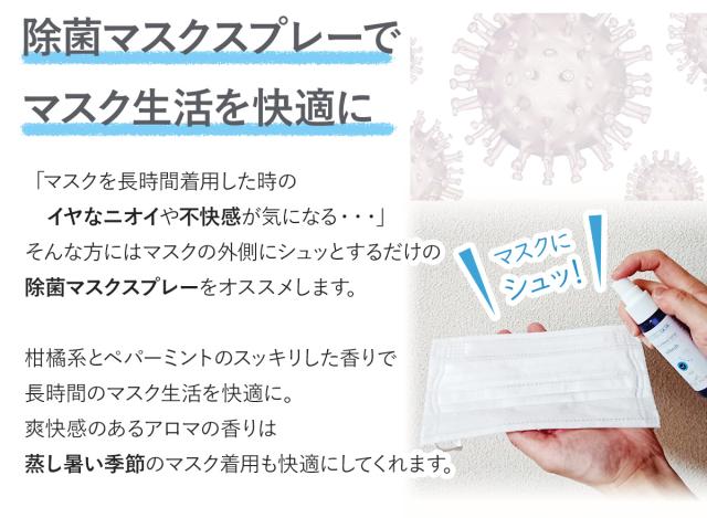 よく振ってからマスクの外側に2〜3回スプレーし、マスクを数回振ってからご利用ください。