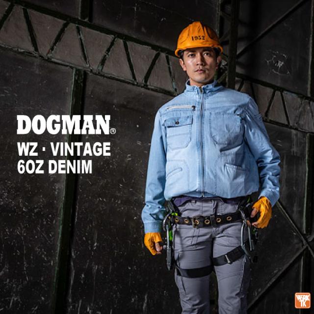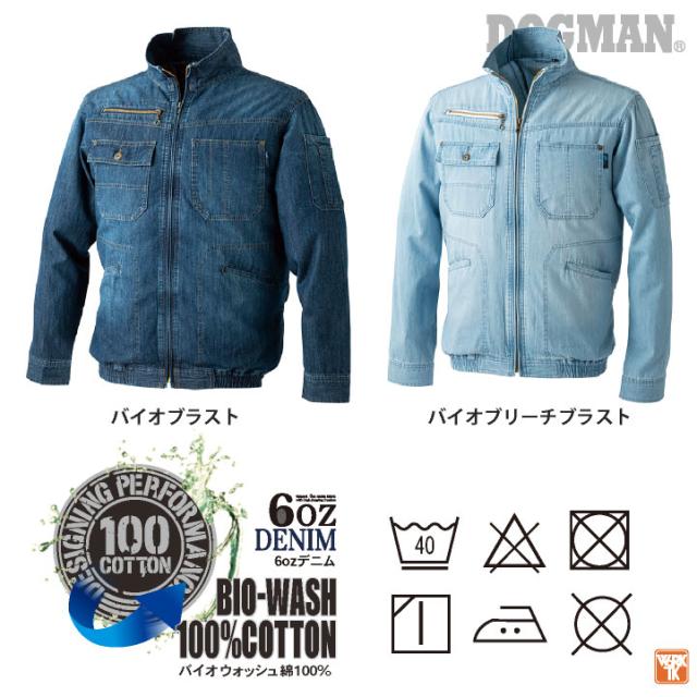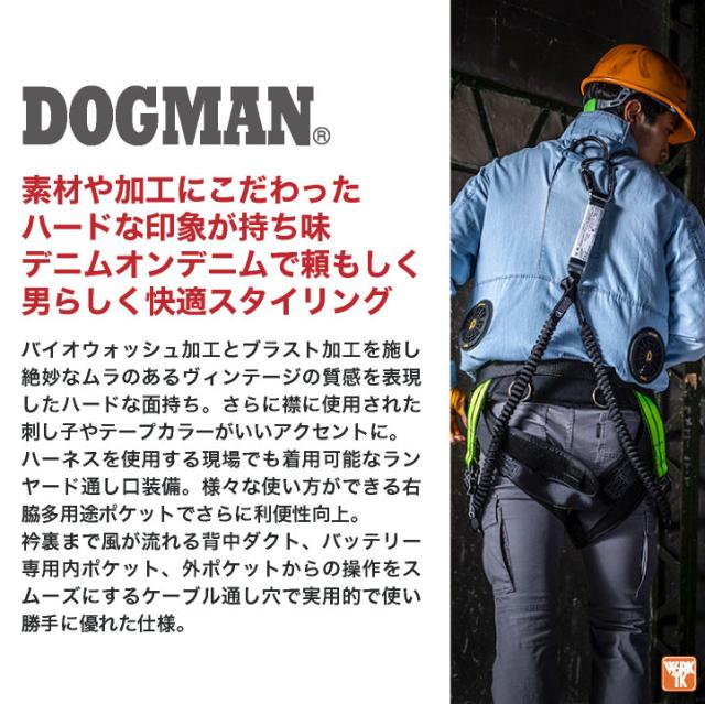 DOGMAN 空調作業服 8829 WZ ヴィンテージ6ozデニムジャケット ファン・バッテリーフルセット 最大出力24V ハードな印象が持ち味の綿100%デニム フルハーネス対応