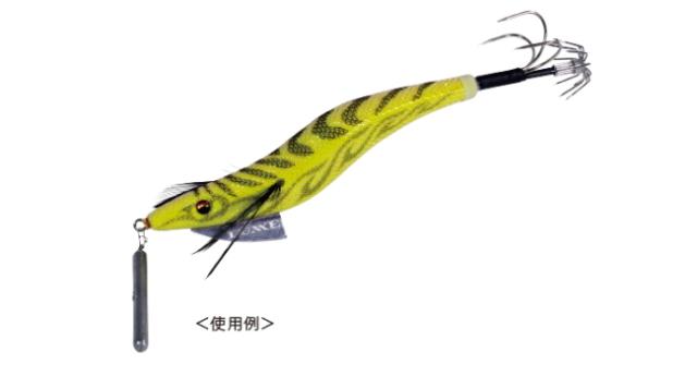 ●基本のセット例は、4号オモリで4.5号エギ、5号オモリで4号エギ、6号オモリが3.5号エギですが、潮の流れに応じて使用し、エギの着底感が伝わるように設定してください。