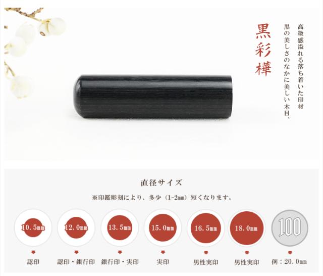 彩樺 実印 売れ筋 認印 銀行印 印鑑作成 はんこ 名前 判子 10年保証 男性 女性 子供 判子 認め印 【黒彩樺 10.5-18.0mm選べる 単品】