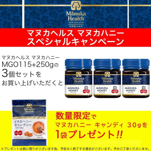 マヌカハニー はちみつ 蜂蜜 マヌカヘルス MGO115 250g 3個セット 旧MGO100 ニュージーランド 純粋 日本向け 正規輸入品 日本語ラベル 送料無料
