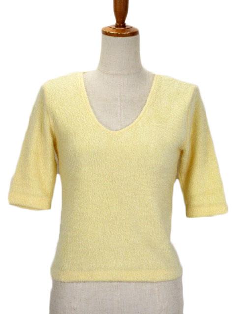 【中古】アンドレルチアーノ ANDRELUCIANO セーター ニット シャギー Vネック 五分袖 黄 イエロー レディース