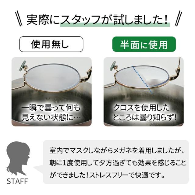 ※本製品は特殊な成分が含まれており、洗濯をしたり水に浸すと曇り止め効果がなくなります。
