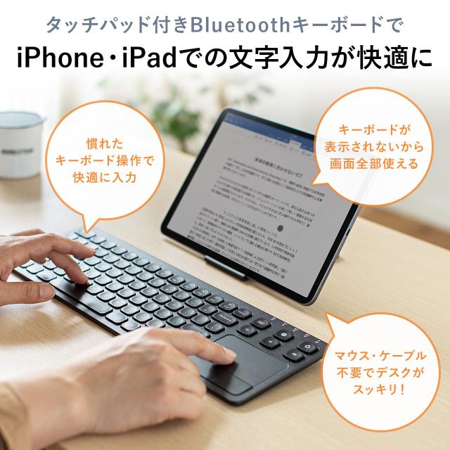 トラックパッド付き Bluetoothキーボード iPhone iPad用 英字配列キー 3台 マルチペアリング USB充電式 [400-SKB066]